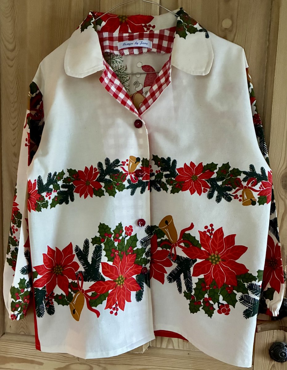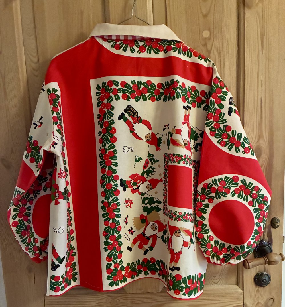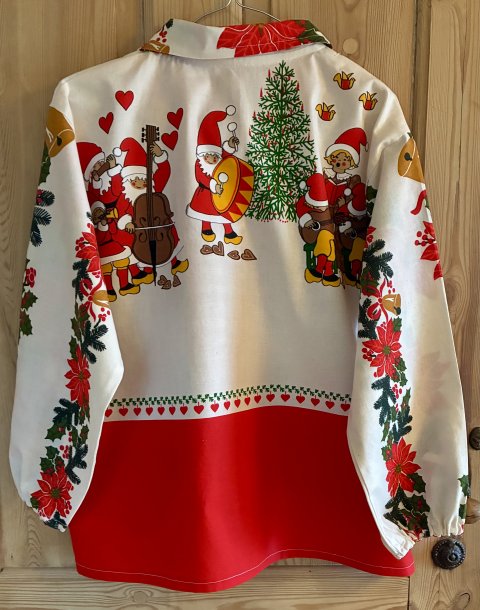 Ny pris! På opfordring er her årets første julebluse syet af retro juleduge [...]i eget design, Design by Jane, i str M-L med trekvart ærmer, sælges 675,- kr #julebluse#bluseafjuledug#blusesyetafdug#jul#juledug#juleskjorte#Læs mere...↑ |  |  |