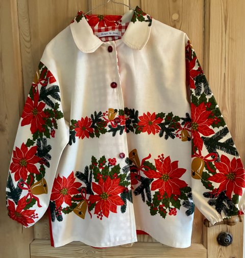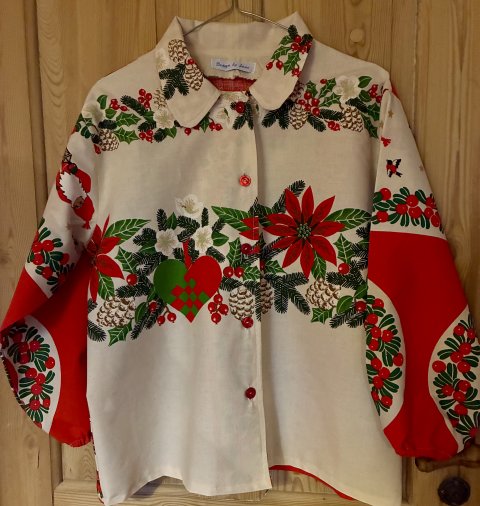 Ny pris! På opfordring er her årets første julebluse syet af retro juleduge [...]i eget design, Design by Jane, i str M-L med trekvart ærmer, sælges 675,- kr #julebluse#bluseafjuledug#blusesyetafdug#jul#juledug#juleskjorte#Læs mere...↑ |  |  |